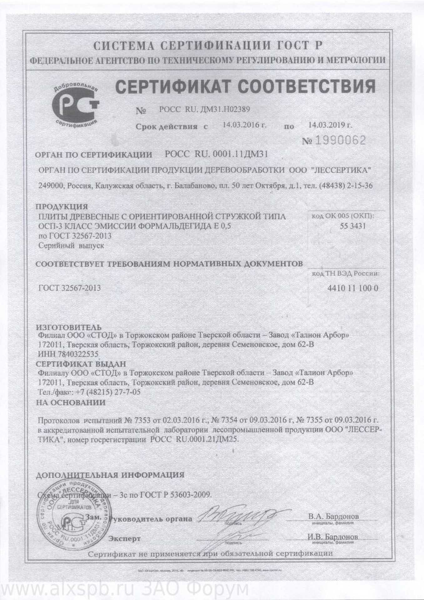Плита OSB-3 (ОСП) Талион (Ультралам) 9х1250х2500 мм
